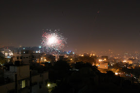 Auch haben sie es nicht so wirklich mit der Sicherheit. Erstens sind nicht alle Raketen gerade in den Himmel geflogen und dort explodiert, sondern manche sind auch schonmal in das Haus nebenan reingeflogen oder auf Leute auf der Strasse. Zweitens kann man die Zündschnurr nicht einschätzen. Als wir am Freitag im Bhumioffice in Rasoolpura waren, haben wir auch ein paar Raketen losgeschossen. An einer war eine sehr kurze Zündschnurr und an der anderen eine sehr lange. Die mit der kurzen ging erst nach 10 Sekunden los und die mit der langen ging schon nach 1 Sekunde los.