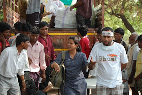 Dort waren schon andere Hilfslieferungen und diese teilten auch genau das gleiche aus wie wir austeilen wollten. Nun gut Harish und Sara machten sich auf den Weg und erstellten mit dem Dorfältesten eine Liste für die, die noch nichts bekommen haben. Während dessen mussten wir wieder sitzen bleiben. Als wir dann aber aussteigen durften kamen gleich wieder ein paar Leute und zwei vom anderen Hilfstrupp haben ein Foto von uns gemacht. Wie im Zoo! Um unseren Laster hat sich dann eine Gruppe gebildet die sehnsüchtig auf unsere Ware wartete.