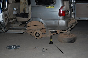 Auf dem Weg dorthin hatten wir noch einen Platten und der Truck hatte keinen Sprit mehr und wir mussten einen Kanister von der nächsten Tankstellen holen.